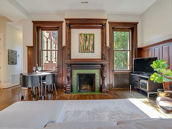 Old World craftsmanship meets contemporary living in charming Schafer mansion condo, 2012 Historic Mount Pleasant Design Winner. Lush gardens, marble lobby lead to great room w 11~ ceilings, & original wainscoting, fireplace, bay windows. Modern kitchen, bath, airy bedroom, 3 ample closets w Elfa, deeded parking. Leafy, close to metro, Rock Creek Pkwy & trails, & eclectic MtP shops & restaurants.