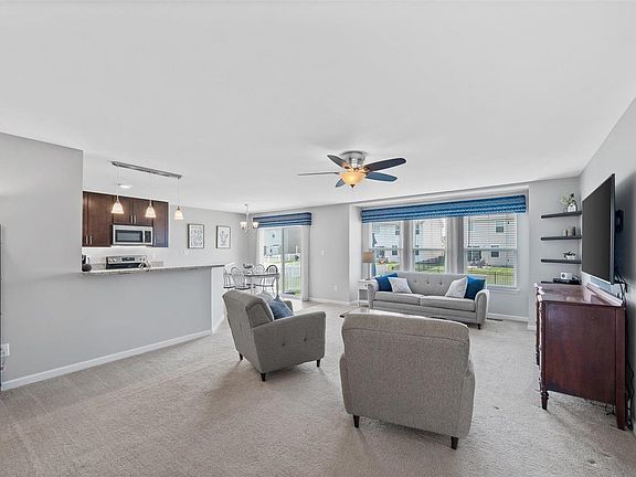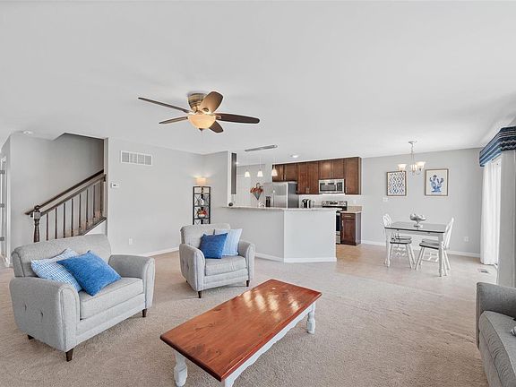 Welcome to this charming 3 Bedroom 2.5 bath detached cottage home located near New Town Blvd. This beautiful 2 story with an open floor plan is ideal for enteraining with a open kitchen concept. Notice the beautiful vaulted sprawling staircase once you enter the home. Lower level boasts a large living room with an open kitchen equiped with stainless steel appliances. Kitchen opens to a large mostly level lot with patio great for entertaining. Upper level boasts 3 large rooms with custom ceiling fans and a Jack and Jill bathroom. Master Suite has large walk in closet, garden tub and seperate shower. Enjoy taking a walk on one of the many trails and lake. Take advantage of all the New Town amenities. Easy access to 370 and 15 min to the airport.