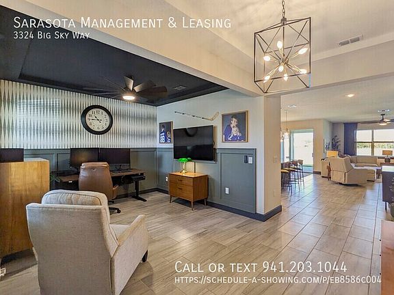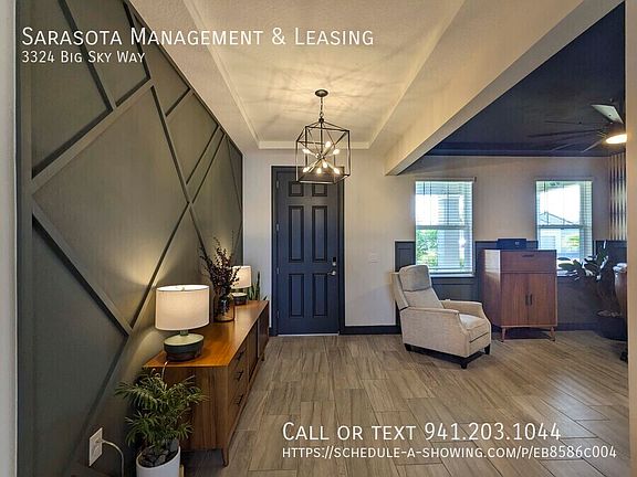 This is a beautiful, unfurnished 5 bedroom, 3 1/2 bath with den and lake view, 2-story home in the new Savanna at Lakewood Ranch community! This San Marino model by Meritage has stunning upgrades and creative finishes including wood-grain tile throughout the main area, freshly painted walls with plenty of accents including custom wood trim, wall tiling, wallpaper accents, and updated fixtures. The main floor features a front porch entryway leading to a den/flex space ideal for a home office. The kitchen includes granite countertops, tiled backsplash, walk-in pantry, stainless steel appliances, under/above cabinet lighting, and an island with breakfast bar. It connects to a dining area with sliders opening to pond views and an adjacent living room. The main floor owner's suite includes an ensuite bathroom with dual sinks, upgraded mirrors, walk-in tiled glass shower, and spacious walk-in closet. A laundry room is also on this level and a guest bathroom. Upstairs contains a media/loft room plus four additional bedrooms with wainscoting and wallpaper, sharing 2 bathrooms with tub / shower combinations. The open lanai with pavers provides outdoor entertaining space overlooking the pond, with a 2-car garage offering convenient vehicle storage and additional space for storage needs. The rental will include the existing TV, fixtures and window treatments. This home is in the Savanna community which features resort amenities including clubhouse, pool, fitness center, basketball courts, playground, dog park and walking paths. The community is located near downtown Lakewood Ranch and not far from UTC, Sarasota, St. Pete, shopping, dining and the Gulf beaches. We score every application. If an application doesn't score high enough, the resident may be required to place the equivalent of two months' rent in a security deposit. Please be aware that leasing this property includes a non-optional Home Assistant Services Package that will cost an additional $30 per month. These services and their cost are separate from Tenant's monthly rent payment and all other payments described in the Lease or any separate Lease addendums. 3 Pets Max, Dogs with Breed Restrictions Parks, Shopping, Dining Lakewood Ranch Schools 2 Car Garage Granite Countertops, Tiled Backsplash, Walk-In Pantry, Stainless Steel Appliances, Under/Above Cabinet Lighting, Island with Breakfast Bar 2 Story, Master Downstairs, Laundry Downstairs Patio with Pavers, Lake View, Yard Clubhouse Community Pool Open Porch Trees / Shrub Care Included Two Car Garage Water Views