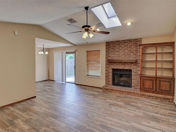 This cute 3 bed, 2 bath home is ready for a new owner & priced to sell! Enter through your covered front porch to your open living room w/vaulted ceilings, cozy fireplace, skylight & built-ins! Note the new wood-like tile in all the common areas of the home. Your dining room is conveniently located just off the living room leading into the kitchen for easy serving and entertaining. Cook for a crowd or a quiet family dinner in your well laid out kitchen with tons of storage! Your master bedroom has it's own full en-suite & new carpet as can be seen in the other two bedrooms of the home! Another full bath accommodates both family members & guests & extra storage in the hall is perfect for linens and seasonal items. Your spacious backyard is a blank slate for all your landscaping & gardening dreams while the storage shed will hold all of your equipment! Conveniently located on the west-side of Norman, you are just minutes away from the Sooner Mall, the mile of cars & ALL the restaurants!