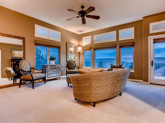 Fabulous Castle Pines Ranch with Amazing Panoramic Mountain Views! Oak Flooring on Main Level Entry to Kitchen and Master. Main Floor Study with Built-in Book Shelves and Double Sided Gas-log Fireplace. Elegant Open Formal Dining. Updated Kitchen Features White Cabinets with Shelf Organizers, Granite Counter Tops with Stainless Steel Sub Zero Refrigerator, Wolf Oven and Decor Gas Range and Bosch S/S Dishwasher. Master Suite with Gorgeous 5 Piece Bath Featuring Steam Shower, Soaking Tub, Radiant Tile Floors and Spacious Closet with Built-in Deluxe Cabinets and Shelves. Awesome Finished Walkout Basement with Huge Recreation Family Room with 3 Bedrooms and 2 Full Baths, Walk Behind Wet Bar with Granite Counter and Wine Refrigerator, Surround Sound Speakers, Flat Screen Mounted TV, Built-In Desk. Huge Patio with Stunning Mountain Views from Composite Deck with Built-In BBQ Grill, Recessed Lighting, Ceiling Fan and Speakers. Professionally Landscaped. Stucco Exterior with 3 Car Garage.