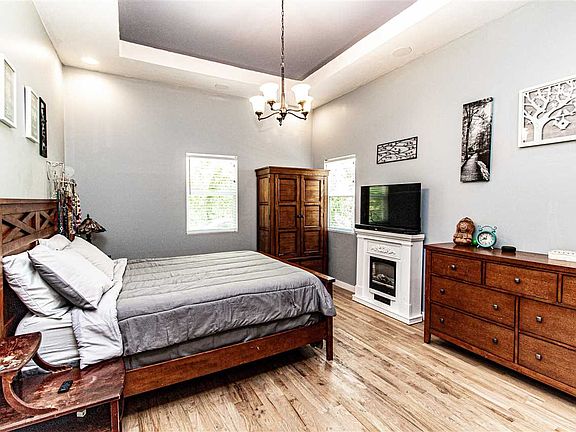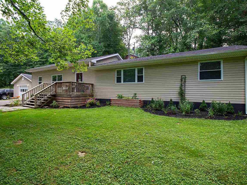 This 4 bed 2 bath home sits tucked back on a beautiful wooded lot with great outdoor spaces - front and back porch, 1 car detached garage, fire pit area, and great flat yard for the kids! Inside you'll notice this home is amazingly OPEN!! The open concept of this home paired with the vaulted ceilings gives it a unique and airy feel throughout!! The master is located to the left of the home with master bath and walk in closet! You have the kitchen with bar seating, main living room, and secondary living space all in the big open area in the middle of the home as well as bedrooms 2,3,4 serviced by 1 full bath at the right of the home! Don't miss out!