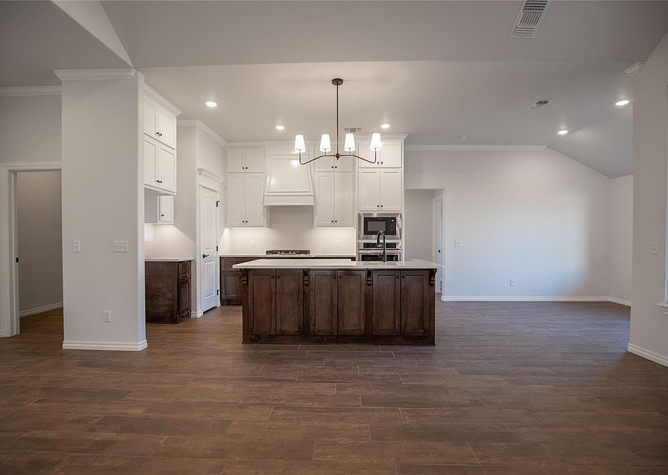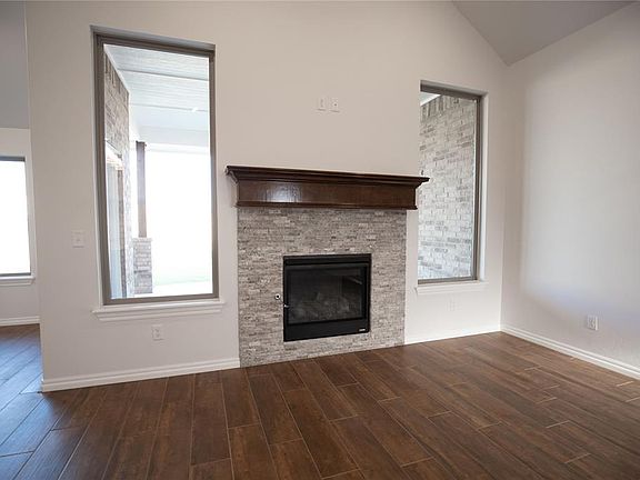 This Hummingbird floor plan features 2,025 Sqft of total living space, which includes 1,800 Sqft of indoor space & 225 Sqft of outdoor living. There is a 565 Sqft, three car garage with a storm shelter installed. This home offers 4 bedrooms, 2 bathrooms, 2 covered patios, & a large utility room. The great room welcomes a breathtaking cathedral ceiling, a gas fireplace with our stacked stone surround detailing, large windows, wood-look tile, & a barndoor. The high-end kitchen has 3 CM countertops, custom-built cabinets to the ceiling, stainless steel appliances, vogue tile backsplash, stellar pendant lighting, a corner walk-in pantry, & a large center island that holds a sink & dishwasher. The elegant primary suite has a sloped ceiling detail with a ceiling fan, windows, and our cozy carpet finish. The attached spa-like bath includes a dual sink vanity, TWO spacious walk-in closets, a roomy walk-in shower, & a Jetta Whirlpool tub. The covered back patio offers a wood burning fireplace, a TV hookup, & a gas line for your grill. Other amenities include Healthy Home Technology, a fresh air ventilation system, a tankless water heater, R-44 insulation, & more!