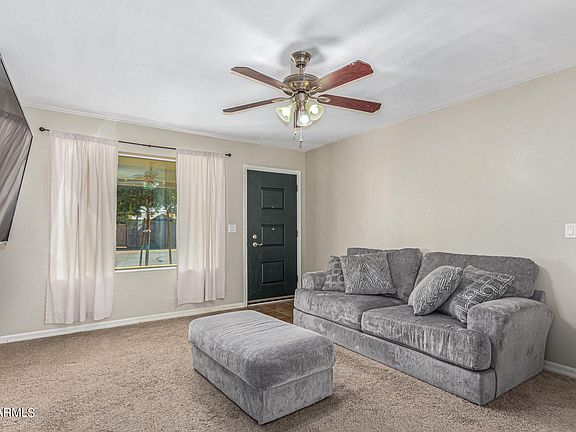 Start living in this fantastic 3-bedroom home featuring a spacious 2-car garage and RV gate/parking. The interior boasts plush carpeting, a neutral color scheme, and sleek tile floors. Relax in the cozy living room or entertain in the family room. The modern kitchen highlights espresso cabinets, glossy granite counters, stainless steel appliances, and a breakfast bar. The main bedroom comes with a private bathroom for added comfort. Outside, enjoy a covered patio, separate laundry room, storage shed, rear vehicle entry, and ample space for a potential pool and gatherings. A must-see gem!
