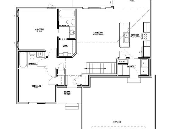 New construction 2 bed, 2 full bath ranch home with open and vaulted floor plan. This home has great vault lines, a kitchen with huge island, main floor laundry, two full baths, large bedrooms, double garage, kitchen appliances included.