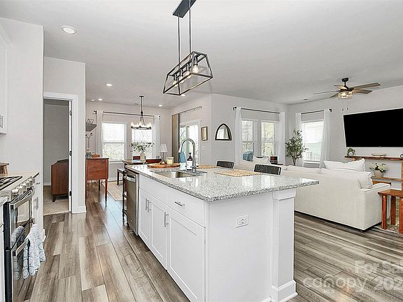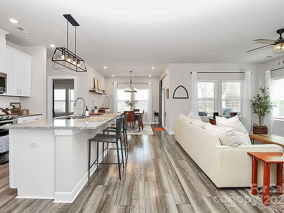Energy efficient home that is just like new without the wait for new construction! This wonderful corner lot home features 3 bedrooms and 2 full baths with a great open floorplan between the kitchen, dining, and great room. The kitchen features stainless steel appliances, a gas cooktop, and a large island. The primary suite features dual sinks and a walk-in closet. Enjoy the evenings on your covered patio overlooking the fenced backyard that backs up to natural area. The community pool with a cabana, pavilion, and grilling area is right down the street. This is a great location between 74 and the by-pass for easy access to South Charlotte and all it has to offer! Only 30 mins to Uptown, Ballantyne, or Southpark.