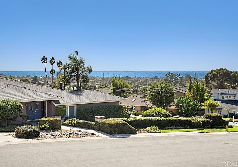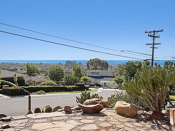 Perched on one of the highest elevations in the sought-after Olde Carlsbad - Seacrest Estates neighborhood, this stunning single-level mid-century gem offers unobstructed, panoramic ocean views for endless enjoyment. On the market for the first time in 56 years, this beloved home is a rare opportunity to own a piece of local history on a street renowned for its pride of ownership and close-knit community. With 1,719 est.sq.ft. of living space, the home features 3 bedrooms, a bonus room, 2 baths, and a private pool, all set on a generous 12,300 est.sq.ft. corner lot. The expansive layout enhances the sense of space and privacy, while high ceilings, exposed wooden beams, and a custom stacked stone fireplace add character and charm. The open kitchen is equipped with stainless steel appliances, and a large west-facing window perfectly frames breathtaking ocean sunsets. The spacious primary bedroom includes a walk-in closet and an en-suite bath with direct access to the backyard, making it an ideal retreat. Outside, the Palm Springs-inspired backyard oasis offers lush palms, cacti, and a sparkling pool, creating the perfect setting for both relaxation and entertainment. The front yard is a work of art, with custom hand-laid rock pathways, striking desert landscaping, and uninterrupted ocean views. Additional features include a detached 2-car garage with ample storage, a separate storage shed, and a custom wood front door that adds a warm, inviting touch. Top-rated schools such as Magnolia Elementary, Valley Middle, and Carlsbad High are just moments away, along with Carlsbad’s famous beaches, Carlsbad Village, parks, and convenient freeway access. This home not only provides a serene coastal lifestyle but also offers a unique chance to own a mid-century masterpiece in one of Carlsbad's most desirable neighborhoods. Don’t miss this rare opportunity! Buyer and Buyer’s Agent to verify all in MLS prior to COE.