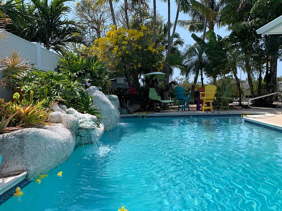 Bring your swim suit (or not)! Ultimate privacy in your own lush tropical setting on the only canal in Key West. Numerous exotic palm species and flowering trees surround you in a resort-like setting. Wildlife preserve across the canal adds additional privacy. The large, deep, heated, salt pool is great for laps or a cool swim after a day on the water or you can choose to relax in the Hot Springs hot tub. Outdoor bath with walk in shower accesses the pool deck. World class fishing, kayaking and paddle boarding from your backyard. This waterfront property features two boat lifts and a large stainless steel fish cleaning table. The concrete metal roofed home was completely gutted and renovated to an open floor plan in 2005 along with the vaulted ceiling addition. No expense spared. cont...