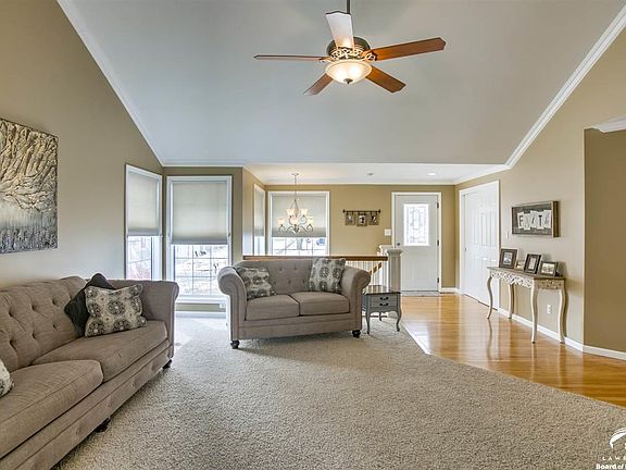 Open House for 3/10 has been CANCELLED!! Extensive upgrades make this move in ready to enjoy! Huge vaulted living room leads into dining room then the large kitchen w island & lots of cabinets. Main floor master w great bathroom, jetted tub & large closet. Great windows bring in the natural light. Lower level has generous family room, two large bedrooms & full bathroom. Still lots of unfinished storage space. Large back deck overlooks huge patio. Bob Hogue builder. New roof '12. Welcome Home!!