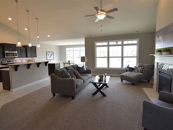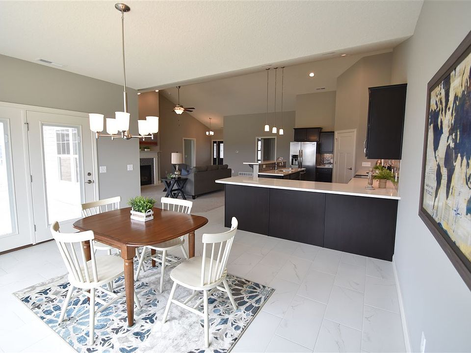 OPEN HOUSE every Sunday from 1-3p. This clean & modern open-concept, split bedroom ranch is great for entertaining w/ large dining space & covered back porch on the pond. The foyer opens to cathedral-ceiling great room w/ sleek gray herringbone-tiled fireplace & wall of windows overlooking the pond. This kitchen features large island w/ raised seating open to living room, another peninsula top/storage, dark contrasting staggered cabinets w/ crown molding, gray herringbone tiled backsplash, Frigidaire Gallery Stainless Steel appliances, & cotton white quartz tops. Down a private hall is Master suite w/ trey ceiling, custom-tiled walk-in shower, cultured marble dual vanity, & huge walk-in closet that conveniently connects through pocket door to laundry room! 2 other bedrooms on the opposite side of the home share a full bathroom. From the garage you enter into mudroom w/ built-in lockers, adjacent to laundry room w/ utility sink. There is also a guest bathroom nearby. The covered back porch is an extension of your indoors for 3 seasons & continues out to open patio, overlooking the pond. In SW Allen Schools, near I-69, shops, restaurants, school, parks, & trails. Built w/ the strength & accuracy of an engineered open-web truss system, HE Low-E Simonton windows, HE 50gal hot water heater, HE furnace/AC, dbl insulation on ext walls (spray foam & batt), 1/2/10 RWS Builder warranty! You will love it!