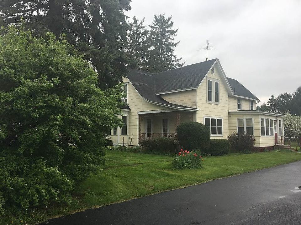 LARGE 3 BEDROOM FARMHOUSE SET ON 2 ACRES. HARDWOOD FLOORS IN DINING ROOM AND LIVING ROOM. EAT IN KITCHEN WITH COUNTERTOP STOVE AND WALL OVEN. CLOSET PANTRY. FIRST FLOOR LAUNDRY. SUN ROOM. MOST WINDOWS HAVE BEEN REPLACED. BEAUTIFUL APPLE ORCHARDS,2 CAR GARAGE AND OUT BUILDING. GREAT LOCATION WITH CLOSE ACCESS TO I-90 INTERCHANGE. HOME AND APPLIANCES ARE BEING SOLD AS IS