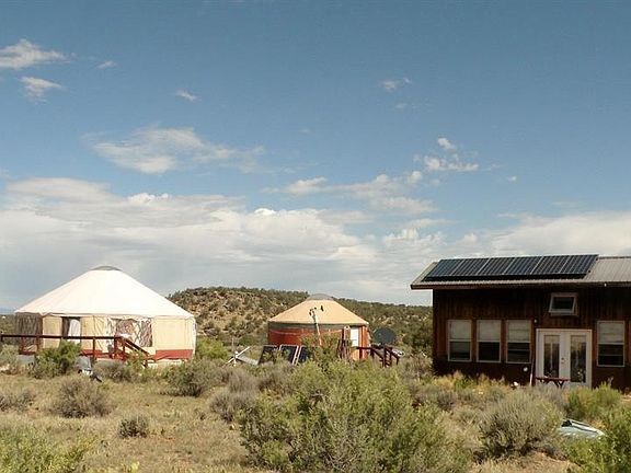 LIVE OFF THE GRID! Discover the ultimate retreat where comfort meets sustainability in this lovely studio. Adorned with exquisite tongue-and-groove wood, the interior boasts large sunlit windows that invite the warmth of the south-facing light. Enjoy the convenience of a 3/4 bathroom, complete with a dedicated laundry room, and a cozy loft that adds to the charm. Nestled on a 3.2-acre lot, this property includes not one but two delightful yurts, perfect for creative endeavors. Equipped with solar power, a reliable backup generator, a generous 1200-gallon cistern, and a fully operational septic system, everything you need for off-grid living is right at your fingertips. Plus, stay connected with available internet access. Don't miss this extraordinary opportunity to embrace a life of tranquility and independence in your very own 0ff-grid sanctuary!