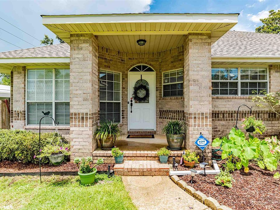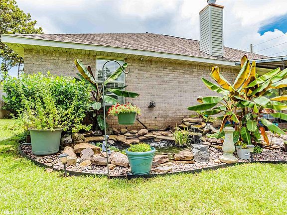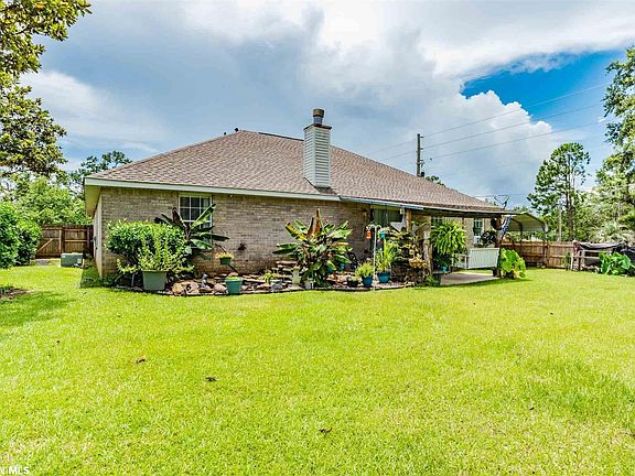 Spacious home on large corner lot in The Woodlands in Lillian. This 3 bedroom 2 bath home features a large kitchen with tons of counter space, stainless steel appliances, granite counter tops, and pantry. Vaulted ceilings in the living room with wood burning fireplace. There is plenty of room in the master bedroom with his and hers closets, double vanity in the bathroom with shower and garden tub. This home has a new roof, irrigation system, & security system. The large back yard is completely fenced in with a covered patio, beautiful waterscape, a barn that has power and plenty of space to store your boat. Deeded BAY ACCESS with a pier over Perdido Bay ($150 year optional) and public boat launch less than 2.5 miles away. Easy access to Elbert and just minutes into Florida. metal carport in side yard not to convey
