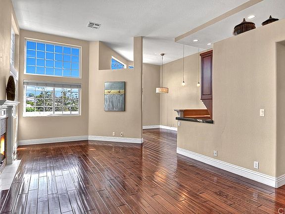 Immaculate, charming beach home w/designer upgrades galore! Secluded end unit w/a large grass area & path to the canyon trail that leads to Dana Point Harbor.Pride of ownership is evident from the moment you walk into this home. Gorgeous walnut wood floors adorn the main level, high ceilings & loads of windows give an incredible sense of space & openness, cozy fireplace w/customs wood mantle warms the living room, a beautifully designed book case occupies a wall as a charming reading nook. Kitchen boasts custom cherry cabinets, some with rain glass doors, stainless appliances, convection oven, microwave & new Kitchen Aid dishwasher. Huge walk-in pantry is a bonus.Charming dining room custom light fixture & sliding doors that lead to private patio overlooking serene canyons where you can enjoy the quiet seclusion w/ a morning cup of coffee or an evening cocktail. Master suite offers cozy fireplace, high ceilings & lots of Windows. Upgraded spa like master bath is spacious w/ dual vanities, separate tub & shower with frameless door & designer tile and fixtures.Walk in closet w/organizers completes this room. Spacious secondary bedrooms w/ custom light fixtures & secondary bathroom w/designer touches.Gated community offers clubhouse, pool & spa.