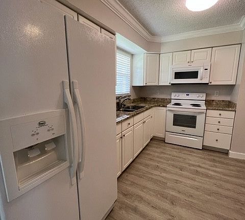 SELLER FINANCING AVAILABLE WITH AS LITTLE AS 20% DOWN. This recently updated 2/1 is move-in ready with beautiful courtyard views. It features grey LVT, a beautiful bathroom with custom tile shower/tub combo, a newer vanity and attractive fixtures. Additional features include 5 inch baseboards, crown molding, window coverings, and ceiling fans. The kitchen has room for a bistro table and chairs and features newer appliances with white kitchen cabinets and granite counter tops. Poinciana Condos offers a beautifully maintained courtyard, play area , a pristine pool, common laundry facilities, a community room, extra storage, and bike storage. Conveniently located in the heart of Naples, close to shopping, dining, beaches, the airport, golf courses and more.