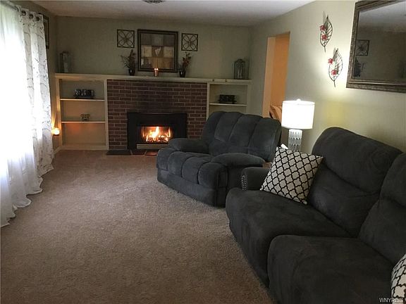 Great floor plan for entertaining. Large welcoming foyer has low maintenance slate flooring that flows past the large pantry closet into the kitchen. Sunny formal living rm features gas fireplace & built-in display cases for books or collections. Formal dining room is immediately adjacent to the eat-in kitchen with newly renovated counters & matte black dual sink. Baseboard heat has 3 zones, plus central air conditioning w/2016 Heil condenser. Also new in 2016, dishwasher & $12K double wide concrete driveway. Total tear-off roof 2007. Much of the flooring & both baths have had recent updates. Almost half an acre lot; mature trees, level lawn & large rear patio. Amazing big garage offers ample storage. Near Buckhorn State Park. In-law possibilities. Reduced and ready to sell-Do not miss it!
