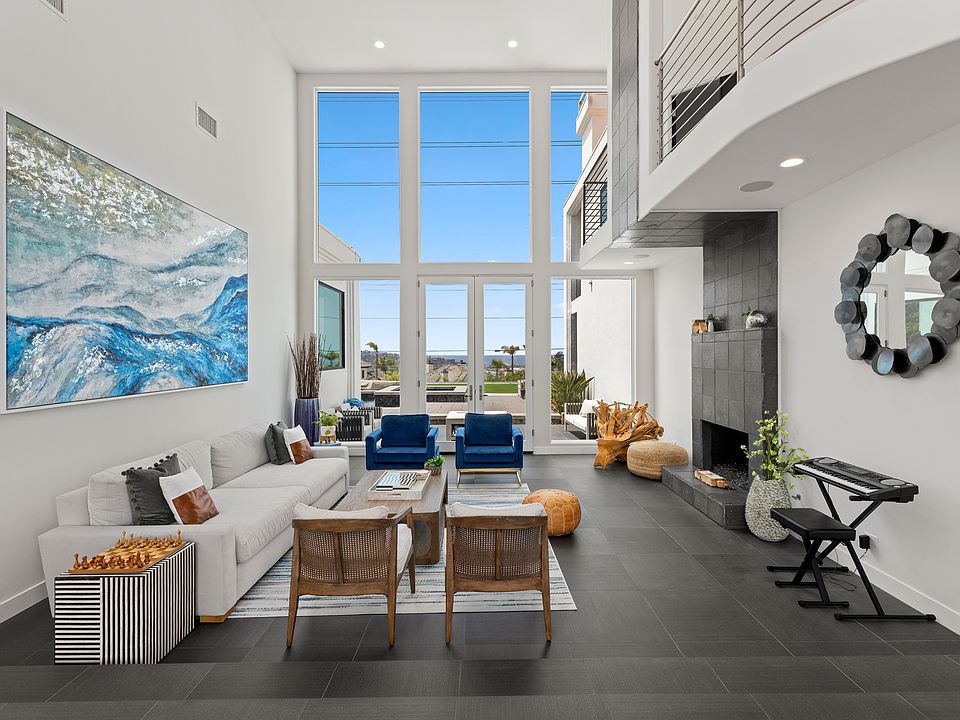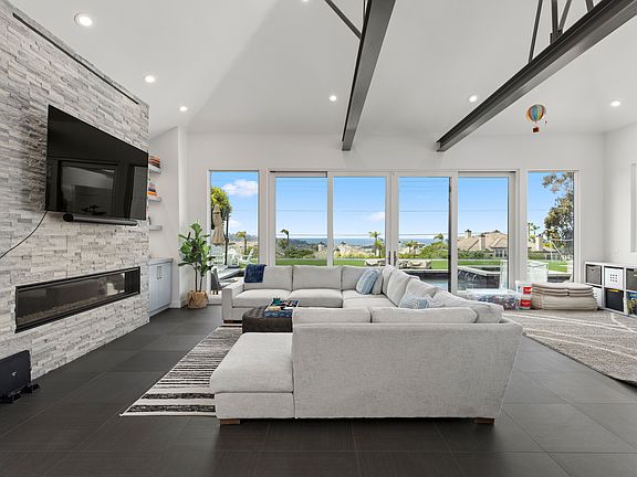 Step into a grand, light-filled entryway featuring a dramatic two-story wall of glass and a designer staircase that sets the tone for this entertainer's dream home. The open-concept layout flows into elegant formal and family living rooms, each thoughtfully designed to showcase breathtaking ocean views. A play area provides the perfect family retreat.