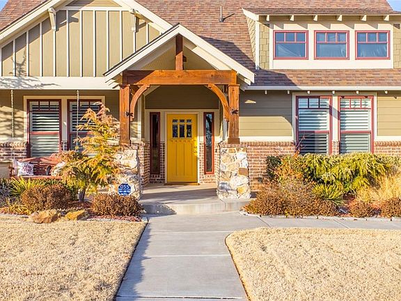 Beautiful, Craftsman style home in the historically inspired community, Town Square in Edmond! This home will captivate you upon entering, as you notice the extraordinary craftsmanship and stunning features of a McCaleb built home. You'll love the open floor plan and large living area, featuring beautiful hardwood floors, stone fireplace and ceiling wood beams. This floor plan allows for seamless entertaining as the kitchen and dining areas open up to the main living area. The bright and airy kitchen features beautiful granite countertops, double islands, see-through glass cabinetry, extra storage and eating space. Large master suite with spectacular closet that features built-in cabinet and drawers. Large laundry room features a fun, blue, built-in desk. Enjoy your evenings by the fire in the large outdoor patio that is perfect for entertaining. The neighborhood has a pond with catch and release fishing, clubhouse and pool. Easy access to I-35 and 20 min to downtown. 2021-04-11