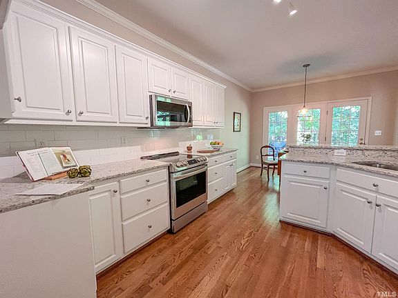 Beautiful brick ranch with room to expand in the huge walk up unfinished attic. Abundant windows with built in window seat and newly finished hardwoods everywhere except 2 bedrooms. Great floor plan with master suite on the left and secondary br on the right, fresh paint, new SS electric range, microwave and Bosch d/w, granite countertops, new roof 2020, lovely raised patio with private wooded view. If you love french doors, big round top windows and soaring ceilings this is the home for you!
