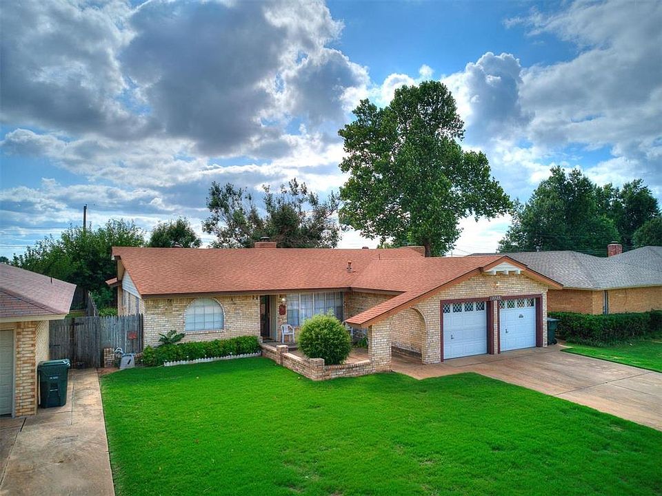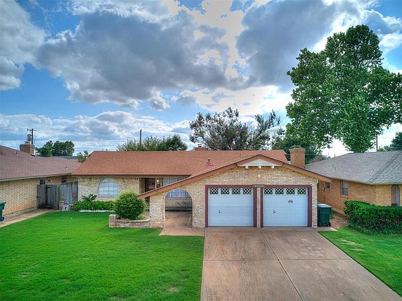 A CHARMING HOME IN THE HEART OF MIDWEST CITY! This 3beds|2baths|2cars HOME is perfect for your home improvement projects and ideas! A nice, huge open porch perfect for outdoor hang-outs greets you as you approach the main door. House features 2 living rooms - the first one welcomes you as you enter the home and enjoys a view of the front porch/yard while the second one features a fireplace and a nice view of the backyard. Kitchen has built-in appliances, lots of cabinets for storage, a breakfast/dining area and laundry area right before the garage access. Good sized rooms are conveniently located in one side of the house. Primary bedroom features a full bath with shower enclosure & single vanity sink. 2 other rooms have their own closets. Covered backyard is big and ideal for BBQ nights with family and friends. Home is minutes away from major highways, Tinker Air Force Base, dining, shopping and entertainment! NEW CARPET THROUGHOUT! Schedule your showing now!
