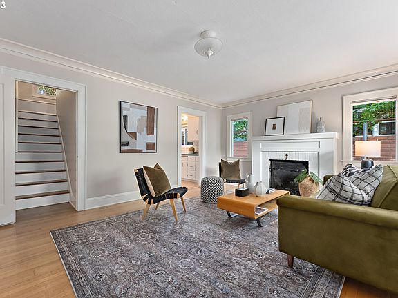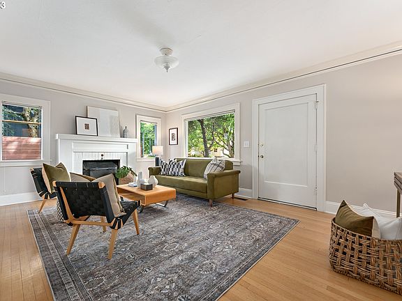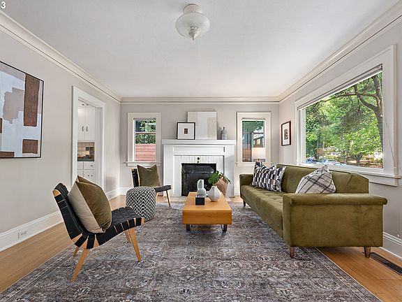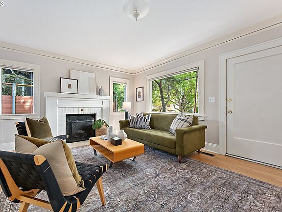 Location, location, location! This cute English is just 1 block from Alameda School and 2 blocks from restaurants and shops. Upper level primary suite is light and bright with vaulted ceilings, skylights and double closets. Main level has a light, open feel with 2 bedrooms, hardwoods and wood burning fireplace. Spacious kitchen has a dining area, bamboo floors and gas range. Detached finished garage studio has a backyard entry with new carpet and paint. It would be perfect for a home office or guest room! Low maintenance front and backyards. Finished garage is listed as 304 additional Sq. Ft in RMLS and floor plan. New roof 11/2023! [Home Energy Score = 1. HES Report at https://rpt.greenbuildingregistry.com/hes/OR10221470]