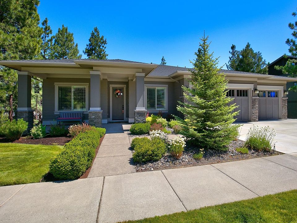 Stunning single level home on a quiet cul-de-sac on Bend's westside, located close to Shevlin Park, schools, & downtown. Entering the home from the covered front porch, you are greeted by an expansive view of a forested Awbrey Butte! The open great room plan has a gas fireplace with stone surround & built-ins, vaulted ceilings & a bank of east facing windows. The kitchen is a delight, with a large solid granite island & granite counters, custom cabinets & high end appliances. Great separation of the master suite from the office & guest bedrooms, one of which is suite. Many upgrades such as 6 ceiling fans & custom light fixtures. Outdoor living extends onto the covered deck along the entire rear of the home, with access from the great room, master, & 3rd bedroom. Stairs from the deck lead to the rear fenced yard which is flat & landscaped. Underneath the home is huge, dry, storage area. The flat, wide driveway entering the spacious 3-car garage is perfect for the Bend lifestyle.