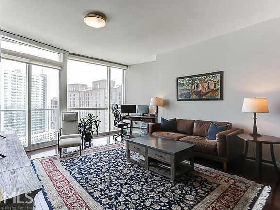 Rare opportunity to own a 19th floor flat at Terminus w/stunning skyline views! Open plan, wide-plank hardwoods & floor-to-ceiling windows. Big living area opens to covered balcony. Cooks kitchen w/slab cabinets, Wolf range & true vent hood, Bosch d/w, Sub-Zero fridge & custom tile. Owners suite w/sitting area & glass door to private balcony overlooking the city!Big spa bath w/double vanity, huge shower & Toto fixtures.Custom walk-in closet. Upgraded window treatments.World class amenities:saltwater pool & spa, club room, indoor/outdoor entertainment areas w/fireplaces, guest suites, gym, media room, pet walk, catering kitchen, onsite mgt, 24-hour concierge & complimentary valet parking.Walk to the best shops & restaurants that Buckhead has to offer!