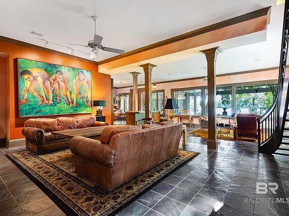 BEAUTIFUL SECLUDED AND NESTLED IN THE HEART OF THE CITY, 3 PRIME ACRES ON DOG RIVER. ONE OF THE MOST UNIQUE HOMES IN SOUTHERN ALABAMA. THIS PROPERTY IS LOADED WITH CHARM, CHARACTER AND INDIVIDUALITY WITH UNFORGETTABLE PANORAMIC VIEWS OF DOG RIVER. THE ENTRANCE FEATURES BEAUTIFUL SOLID WOOD & GLASS ANTIQUE DOORS WHICH OPENS TO A LARGE SPACIOUS LIVING AREA WITH MAGNIFICENT VIEWS! THE ROOMY KITCHEN FEATURES GRANITE COUNTERS, GAS COOK TOP DOUBLE OVENS, SUB ZERO REFRIGERATOR, LOTS OF STORAGE AND CASUAL DINING, WITH EXPANSIVE VIEWS OF THE RIVER & OAK TREES. THE MAIN BEDROOM BOASTS OF HIGH VAULTED CEILINGS, MASSIVE WINDOWS WITH STAINED GLASS ACCENTS, GORGEOUS SPACIOUS EN-SUITE & HUGE DESIGNER CLOSET, ADDITIONAL BEDROOMS ARE SPACIOUS AND BATHS. EVERY DOOR IN THE MAIN HOUSE HAS A STORY AND THE PRIDE OF OWNERSHIP DEFINITELY SHINES. THIS PROPERTY HAS A 2 BEDROOM GUEST HOUSE, TENNIS COURTS, JACUZZI. BOAT HOUSE HAS A LIFT CRAB PIER PLUS A SUN DECK. CALL TODAY AND FIND YOUR DREAMS A HOME. All updates per the seller. Listing company makes no representation as to accuracy of square footage; buyer to verify. Buyer to verify all information during due diligence.
