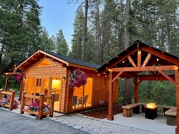 A unique mini home! Whether you're looking for a weekend get-a-way, a cottage to call home or maybe you're a "snowbird" looking for a recreational paradise - this is a must see! This adorable cottage with an interlock log system provides superior thermal mass and strength. Kids will love the loft with 2 handcrafted maple double beds. Main floor living area has a comfy bedroom with a custom queen bed handcrafted of burl, a living room/kitchenette with a charming wood cooking stove and a custom tiled bathroom. 2 large matching gazebos blanket each side of the cabin, 1 with maple benches and a fire pit/table, the other with a sauna and wired for a hot tub. All nestled on 5.39 forested acres with easy access to Hwy 395 and less than 30 mins to Spokane. Nearby Deer and Loon Lake are just minutes away. Deer, elk, turkey, birds and chipmunks are frequent visitors. 4 seasons of beauty all less than 1 hour from Spokane International. Star-link internet is available w/lightning speeds. 50 amp RV hookup-w/septic dump.