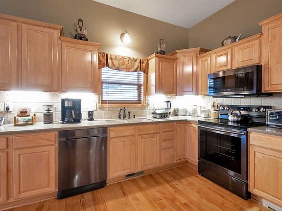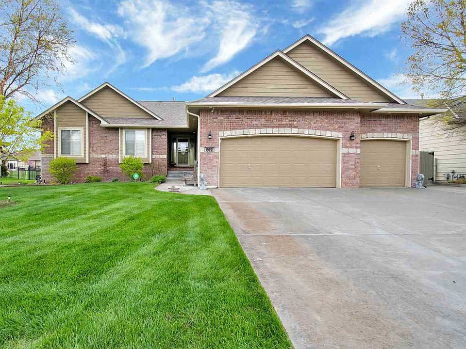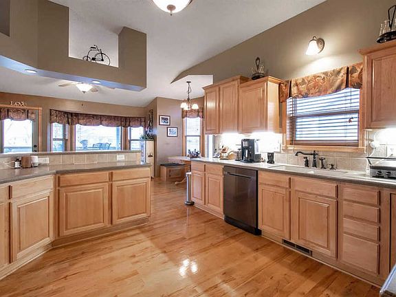 Call for a Private showing today! Enjoy lake living in this former model home, Blue Lake is a lakeside community with a 55 acre lake for relaxing on the beaches, fishing, and boating (no gas motors). Easy access to I-235. Vacation at home with this ranch home that features 5 total bedrooms, 3 full baths, full basement with walk out so that you can walk out onto your own beach area to enjoy the 55 acre stocked fishing lake perfect for relaxing on the beach. Seller has created a perfect lake space, one side has a cement pad to walk into the lake the other was created to have sand for the beach area also included is your own private boat dock. Windows span the back of the home for stunning view of the lake. Gathering is made easy in this open kitchen/great room with custom dining table that will remain with the home, a 3-way fireplace & walkout onto the large wood covered deck for additional views. The master suite offers vault ceiling, bath vanity with dual sinks, soaker tub, oversized shower, and a large walk-in closet. You'll love hanging out in the finished walkout basement with 2nd fireplace, two bedrooms, full bath, and a spacious rec room with wet bar. The fenced backyard has a sprinkler system and an irrigation well to keep up the manicured lawn, the 3 car garage is finished plus there is additional cement pad on the side of the house for additional parking or storage.Information deemed reliable but not guaranteed. Buyers Agent to verify schools