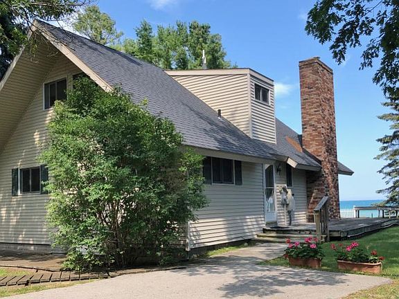 This four bedroom year round home sits on 75 feet of pristine Lake Huron frontage. The main level provides an open living and dining room combination with stunning views from both doorwalls. The kitchen offers an eat in countertop and pantry area, and includes all appliances. Two nice sized bedrooms, laundry, and a 3/4 bath are also on the main level. Upstairs are two additional bedrooms and a full bathroom. The lakeside room includes a balcony and commanding views from the doorwall. Outside you will find a 26x22 garage with plenty of parking on the blacktop drive, generator, and a wrap around lakeside deck.