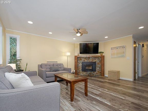 Just 5 blocks from Multnomah Village, and tucked away on a private lane on almost 1/2 acre! This secluded oasis features numerous upgrades including an open concept floor plan, energy efficient vinyl windows, almost new high efficiency furnace & A/C. Bright custom kitchen with high end stainless appliances & fixtures, pull out drawers & pantry. Right across the street from beautiful Spring Garden Park! This turn-key home is a hidden gem in an outstanding location! [Home Energy Score = 8. HES Report at https://rpt.greenbuildingregistry.com/hes/OR10187177.pdf]