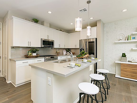 Model 3 has beautifully appointed designer touches with 3 bedrooms, a loft, 2.5 baths, hardwood flooring, designer kitchen counters and backsplashes, Samsung Stainless kitchen appliances including double oven range and hub refrigerator, white front load Washer & Dryer, clear lite panty door, deck off master suite, custom accent walls, designer paint, designer bathroom counters and backsplashes, custom landscaped backyard with grill and fountain. Due to the high volume of interested homebuyers, our appointments are booked one to two weeks in advance. Thank you for your patience.