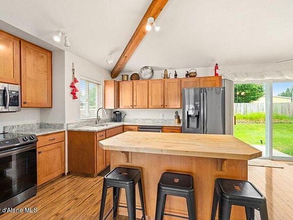 Discover this stunning 4-bedroom, 3-bathroom home with over 2,000 sq ft of living space, offering easy access to all that Coeur d'Alene (CDA) has to offer. The large living and dining areas, along with a family room off the kitchen, provide the perfect setting for hosting friends and family. The kitchen features granite countertops and newer stainless steel appliances.