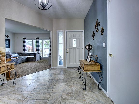 Just in time for Summer, enjoy your own backyard paradise! You'll love outdoor entertaining at this gorgeous east Medford home. Private yard w/ above ground pool, cabana & deck, soothing bubbling water feature, covered patio & views of Roxy Ann. The 4 bedroom, single level home has new interior paint with neutral color palette, 9' ceilings throughout, a primary bedrm w/en-suite bath, walk-in closet, private access to the back patio . Laundry/mud room w/ tons of storage! Spacious guest bath w/ tub-shower. Easy care Italian tile flooring in most of the home, carpet in bedrooms for warmth. Light n' bright kitchen, stainless appliances, island seating, new tile backsplash. Living rm off kitchen w/ gas fireplace, vaulted ceiling w/ skylights, heated tile floors PLUS huge family rm.Finished 2 car garage w/storage. RV parking area for small RV & storage shed too! Walking distance to the new Cedar Links Park w/ pickle ball, dog park,playground, walking paths.