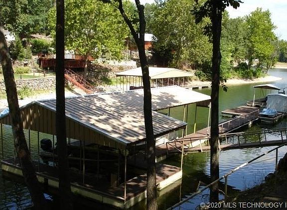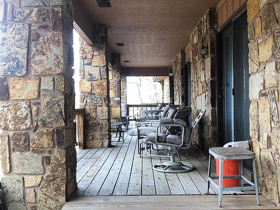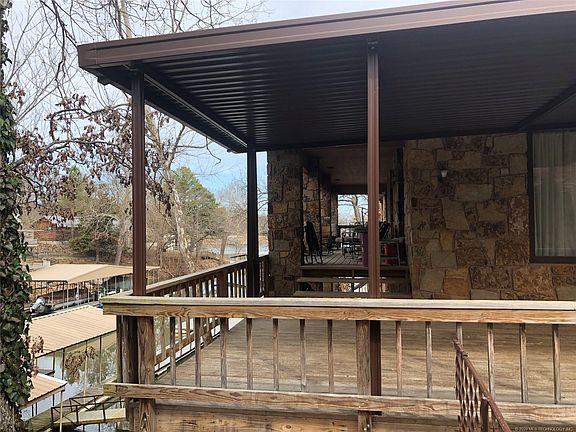 Waterfront home with large living room, kitchen open to dining room & living area, 3 bedrooms, 3 1/2 baths, another large living room/den with single slip dock and a attached swim platform near Arrowhead South. Also, has covered deck off of living room, a two car carport and extra storage building upper level and down below.