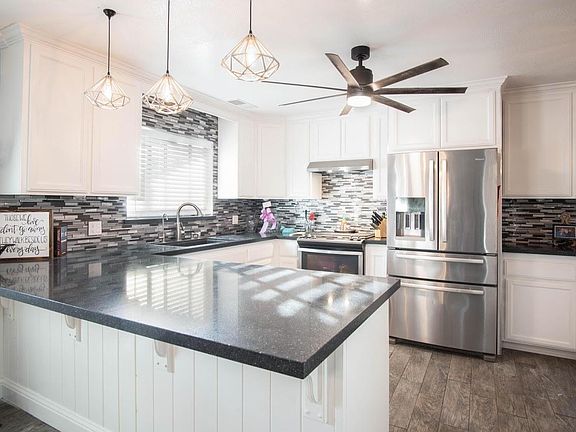 Amazing chance to own a completely custom home. From the quartz counter tops, to the built in mantle in the living room, this home has been lovingly remodeled from top to bottom! It features 4 beds and 2 baths, plus an office! Come fall in love with the views from the wrap around porch. Every room features crown molding and new flooring, whether it be ceramic wood look tile or matching carpet, this house is sure to please! The pool is a beautiful blue pebble tec and perfect for entertaining! This custom home was built for convenience in mind, with amenities that include a rain soft water softener and reverse osmosis system, window locks and wired for an alarm system, too much to list! A rare 4 bedroom that will not disappoint!