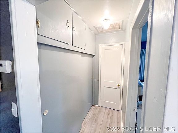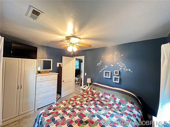 Turnkey lakefront home with room to grow. Situated on the 52 mile marker of Lake of the Ozarks this 2 bed 1 bath is ready to move in. You will be surprised of the amount of space inside and out with room to add on to the home or build a garage with the extra flat yard. An additional 80 sq ft of space on the covered porch allows you to relax and entertain with views of the water in the shade and privacy. Concrete steps lead to the 110sq ft bunk house and envy of all your company, complete with bunk beds, window ac and the views of the main channel. A few more steps and you are enjoying the 2 well dock in calmer water at the lake. Close to several water restaurants by land and boat, 15 min to Laurie and Ozarks International Raceway. This is a well maintained home in a desirable area with almost 90 foot of lakefront to enjoy this summer.