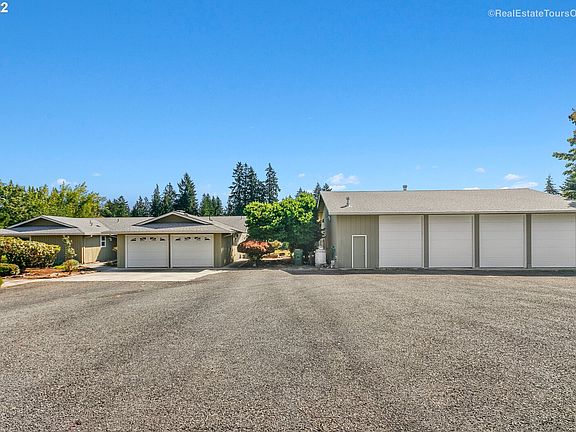 Nice single level 3 bed 2.5 bath home on level 2.7 acres offers plenty of space and privacy while still being close to town. An easy commute from Portland! Updated kitchen and primary bathroom. 2 large living areas both with a fireplace, one gas and 1 wood to keep you cozy once winter sets in. Large composite deck off the beautiful sunroom is a great place to take in the views and enjoy your peaceful property.Huge 4 bay shop with 1800 square feet of space to accomadate any project or hobby.