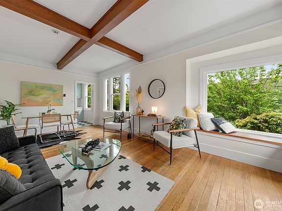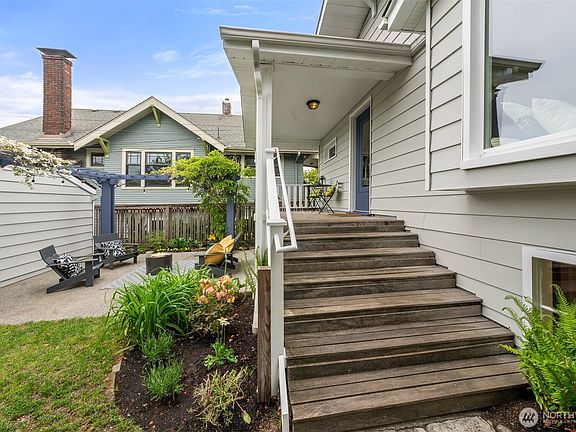 A rare gem in the heart of North Beacon Hill. This turn-key 1900s Craftsman sits on a sun-soaked, south-facing corner lot. A welcoming front porch, wisteria-draped patio, and fully fenced garden getaway reflects years of love and care. Inside: box beam ceilings, original floors, 9ft ceilings, and window bench seating. A study off the main-floor primary offers space for an office or nursery. The basement features a large bedroom and second study space plus bath and laundry. Thoughtful updates include new south-facing windows, kitchen appliances, updated electrical, and new flooring in the kitchen and basement. Detached garage adds storage or workshop. Steps from Jefferson Park, light rail, shops, and dining. Truly one of a kind.