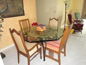 DESIRABLE RARELY OFFERED 3 BEDROOM CORNER CONDO WITH SPLIT BEDROOM PLAN.THIS PRISTINE ATTRACTIVE HOME HAS DESIRABLE EASTERLY EXPOSURES AND WIDE GOLF & LAKE VIEWS FROM A 20' PATIO WHICH OPENS INTO THE LIVING ROOM & MASTER BEDROOM. GENEROUS LIVING SPACE INCLUDES A SEPARATE LAUNDRY ROOM WITH EXTRA STORAGE & NEWER FULL SIZE WASHER & DRYER. THE TILED EAT-IN KITCHEN HAS UPDATED APPLIANCES INCLUDING A NEWER FRECH DOOR REFRIGERATOR WITH BOTTOM FREEZER.LARGE CLOSETS THROUGHOUT, THE SPACIOUS MASTER BR HAS AN ENSUITE BATHROOM WITH NEWER VANITY & FIXTURES. THE 2ND BTH BOASTS A VERY LARGE LINEN CLOSET. ATTENTION TO DETAIL IS THIS OWNERS' MANTRA WITH IMPACT WINDOWS (AND ACCORD. SHUTTERS ON THE WINDOWS ALSO)& IMPACT GLASS SLIDERS ON THE EXTERIOR WALL OF THE PATIO OPENING UP THE VIEWS AND LIVING SPACE.