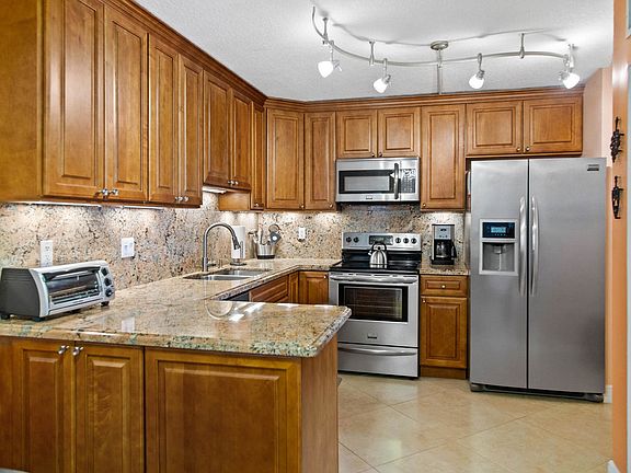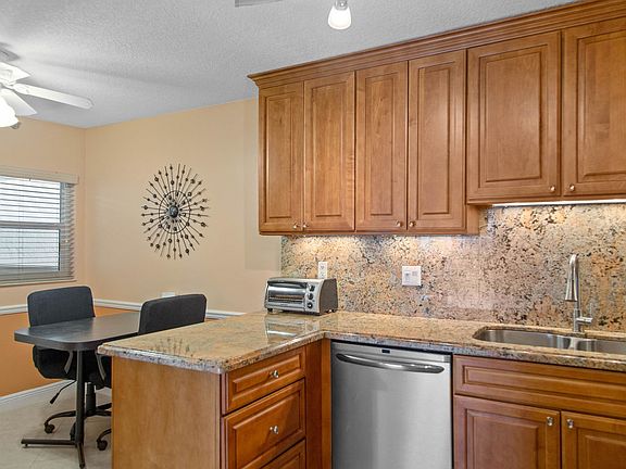 Step through the double door entry to this absolutely pristine, totally renovated three bedroom condo. This fabulous corner unit has an open concept living/dining area with adjacent built in bar. It's perfect for entertaining. Light and Bright, you will feel right at home while enjoying the sweeping views of the pool and golf course from the screened in patio. Impact windows make this an even more desirable unit. With lovely finishes, granite counters in the kitchen and both bathrooms, this one is certainly a must see.