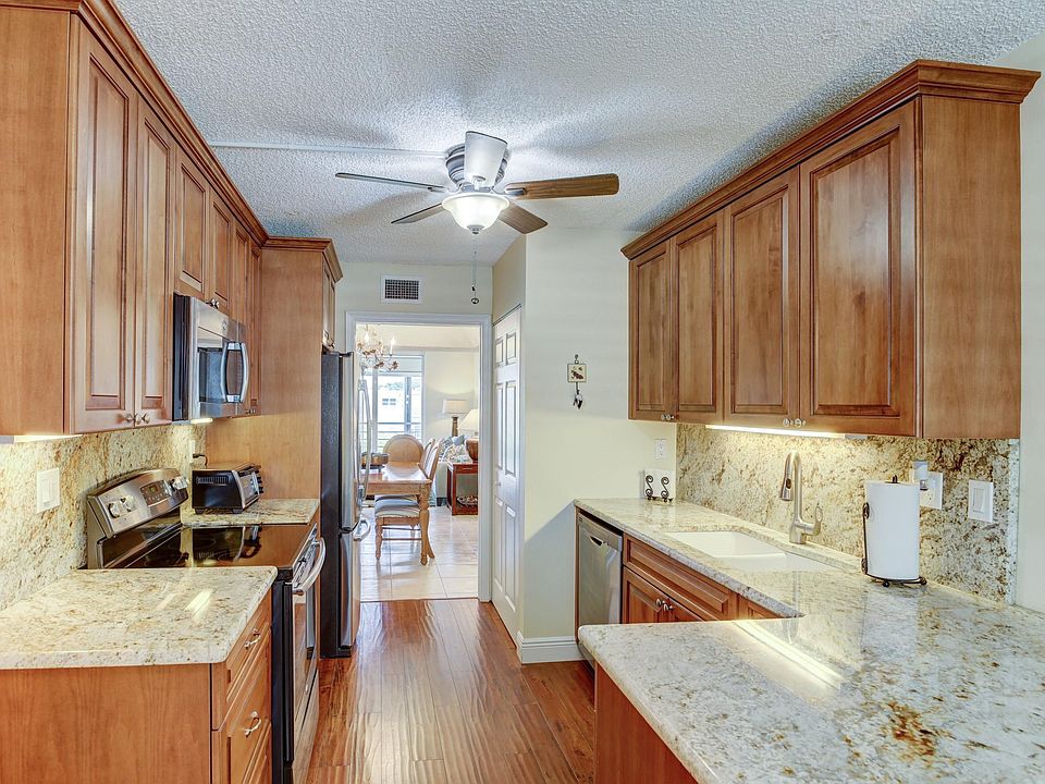 WELCOME TO THIS UPDATED NATURALLY BRIGHT CORNER CONDO WITH POOL, GARDEN & GOLF VIEWS! THIS PRISTINE HOME FEATURES TILED + UPGRADED WOOD LAMINATE FLOORING, WOOD KTICHEN CABINETRY WITH AN EXPANDED COUNTER AREA & GRANITE COUNTERTOPS, STAINLESS APPLIANCES, AN UPDATED MASTER BATH & IMPACT WINDOWS IN THE KITCHEN, GUEST BEDROOM & MASTER BEDROOM. THE TILED BALCONY HAS ACRYLIC SLIDERS TO KEEP OUT THE RAIN & KEEP IN THE VIEWS! THIS MODEL FEATURES SPACIOUS ROOMS, LARGE CLOSETS, & A SPLIT BEDROOM PLAN TO WELCOME YOUR GUESTS WITH A BEDROOM WITH AN ADJACENT BATH. AVAILABLE PARTIALLY FURNISHED.THE ESSEX HAS A POOL AT THE BUILDING & RESIDENTS HAVE ACCESS TO AN ADDITIONAL POOL AT THE CLUBHOUSE WITH ITS PAY-AS-YOU-PLAY GOLF, TENNIS, MEL'S BISTRO & ENTERTAINMENT, MOVIES, SHOWS, TRIPS, LIBRARY, GYM