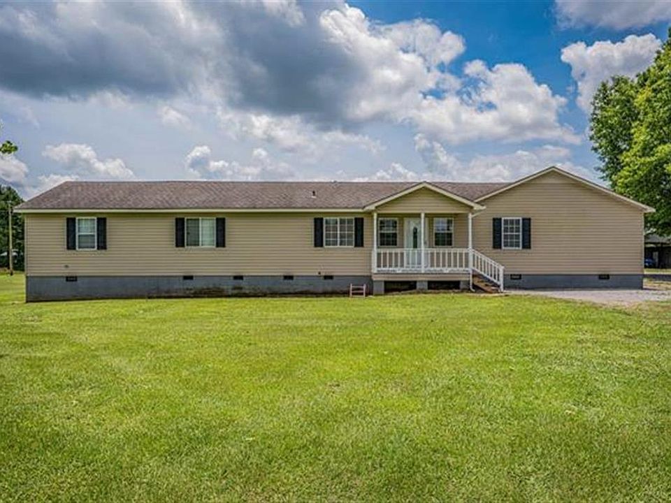 This is NOT a mobile home!! It has four bdrms and four full baths. It has a family room, kitchen and laundry rm and an attached two car garage. Vinyl siding and a front porch and side deck off back door. The house sets on .8 acres m/l pretty setting and great place for a garden in this big level yard.