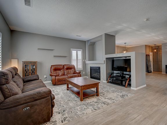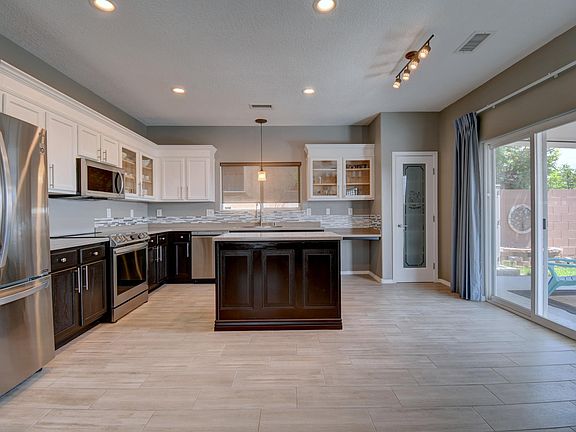 This two-story home, located the the Chamisa Greens neighborhood, offers stunning upgrades and a beautiful mountain view. With four bedrooms, an office, and three bathrooms, it provides ample space for a family or guests. The home features exquisite flooring, newer paint, and stylish stainless steel appliances. Some windows are adorned with beautiful wooden shutters, adding an elegant touch. The master bedroom offers a breathtaking mountain view of the Sandia, creating a serene retreat. The two-car garage ensures convenience and security. This home presents a luxurious living experience, blending modern upgrades with the beauty of its natural surroundings. Come see this gorgeous home before it's gone!