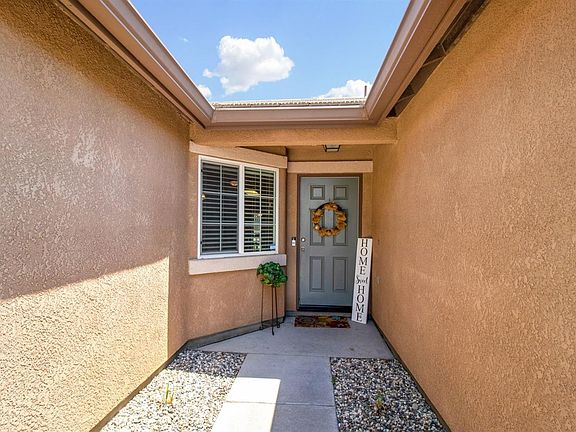Exceptionally well maintained Centex home on elevated lot with 2 living spaces and RV parking. This popular model has the formal dining room that was an option as a 4th bedroom. Open floor plan allows you to visit with the ones you love. Kitchen features rich pecan cabinetry with brushed nickel hardware and granite counters that is open to the eating area and family room with breakfast bar seating as well. The living room is a bit more private allowing family members an area to relax and unwind. An office area is also provided for someone who works at home or for kids to study. Owner's suite is isolated, has a very large walk-in closet and en-suite bath with dual sinks & gleaming new shower doors. Laundry room has gas & electric hook-ups & is between hall and finished garage. Back yard has a long covered patio and is on the east side of home for cooler and shadier outdoor enjoyment. Extra cement on side of home allows you to reach the vegetable garden area with ease and there's a pad for a shed too. Book your appointment before it's gone.