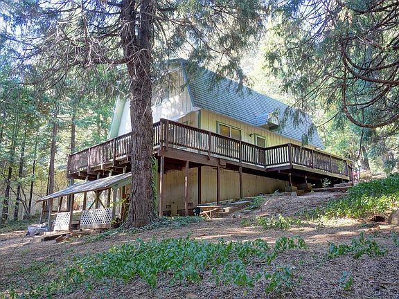 Lucrative VRBO On almost ONE ACRE, a couple minutes from the freeway & minutes from Jenkinson Lake/Sly Park. 2 large bedrooms w/walk-in closets & full bath upstairs and full bath on the main level w/the great room, kitchen and laundry room. 2 decks allow outdoor living plus Storage/workshop area in back of home. Circular driveway for ease of access off Sly Park Road. There's room to possibly build a SHOP out back too! NO HOA or CC&Rs. Most furnishings can stay also!
