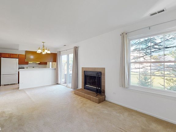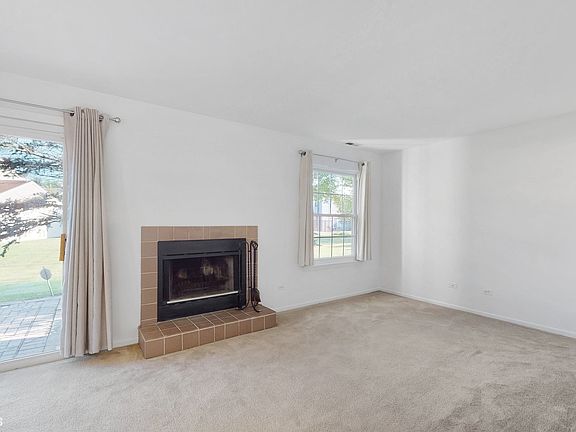 Buyers had cold feet! Now's your chance to own this Essex end-unit model, at Southport Village. This home provides wonderful indoor and outdoor living spaces surrounded by beautiful landscaping and old growth trees. The living room's 2-story vaulted ceiling gives a feeling of expansion upon entry and is flooded with natural light. An attached garage leads conveniently to the kitchen. The kitchen opens to the back paver patio as well as the combo dining area and family room with a wood burning fireplace. Between the living room and family room is a large storage space that is accessible from both rooms. A fabulous brick patio, for outdoor dining or entertaining, can be accessed through the kitchen or the family room. The main floor includes a full bath as well. Upstairs, a balcony space leads to a large primary bedroom with treetop views, a ceiling fan and ensuite and the second bedroom. Nearby, a walking path leads to the Fox River. Enjoy the beautiful gardens this homeowner has created with love and attention both in both the front and back yards. A new HVAC system was installed 2022, includes a 10-year transferrable warranty! Ample guest parking spaces are immediately across the street from the home.