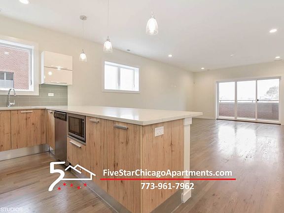 3 Bed 2 Bath Deluxe NEWER CONSTRUCTION with SS Appliances, Quartz Counters, W/D, Parking Fantastic 3 Bedroom 2 Bath sunlit suite in Irving Park - Featuring secure entrance, hardwood floors and a Kitchen you have to see. Beautiful Quartz counters including a large peninsula with Breakfast Bar., Upscale appliances, above stove vent that sends cooking smells outside, 2 door refrigerator, dishwasher, and built-in microwave. The Master bath has a double sink vanity and a glass shower. generous bedrooms and side by side full-sized washer and dryer. As you enter you're welcomed by a bench, sit and take your shoes off. This is a great walking neighborhood. your choice of so many restaurants within a few minutes stroll: Hearth & Crust, Arun's Thai, D'Candela, Umi Restaurant, Raisu Japanaese Fine Dining, Ixcateco Grill, Angelo's Wine Bar and so much more including Dinner Theater. Get rid of some stress, and maybe a pound or two, at Independence Park or Horner Park, go skating at McFetridge Sports Center. Got a bike, the 312 trail is nearby. There are 2 Blue Line and a Brown Line station less than a mile from your new home. Living/Dining: 23x16 Kitchen: 12x10 Master Bedroom: 14x13 Bedroom: 12x11 Bedroom: 12x10 Transportation: - walk to Blue Line or Brown Line - Short drive to I-94, The Kennedy - Great biking area Pets: - $300 Pet Fee ($400 for 2) - $25/month pet rent per pet Included Utilities: - Water, Sewer, Trash - 1 parking spot Tenant pays: - Gas (heat & Cooking Gas), electricity - No Security Deposit - $750 Move In Fee