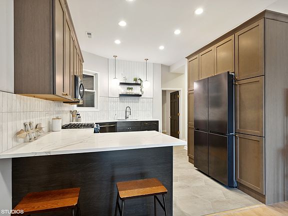 $7,500 in free lender credits through Citbank with only 3% down for qualified borrowers on owner occupied purchase! This entirely renovated 3bed/2bath loft style condo features gorgeous, modern updates and custom finishes throughout with an all-new kitchen, new primary bath, fresh paint and so much more! The sleek kitchen offers porcelain hexagon tile, custom-made shelves, quartz lava countertops that perfectly accent the two-toned 42" cabinets and Samsung black matte stainless steel appliances. First bath is conveniently located between the living room and kitchen, featuring new flooring, Moen fixtures and faucets, alongside a new vanity and patterned ceramic tile floor. The primary suite features a luxurious bathroom with marble mosaic and porcelain marble look-a-like. The accent wall features a bold and dark green ceramic herringbone tile, complemented by matte black metals and a custom window pane glass shower divider. High-tech updates including a Moen digital shower system with fixed and handheld shower with optional rain shower head. Conveniently located steps away from the 606 Trail and Humbolt Park, and numerous coffee shops and restaurants. Building has common rooftop and includes deeded garage parking.